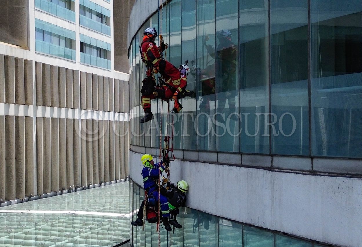 • CIUDAD DE MÉXICO 19SEPTIEMBRE2025.- Se llevó a cabo el Simulacro Nacional 2025 para conmorar los sismos de 1985 y 2017. En imagen aspectos del Edificio Reforma 222 durante el simulacro en el cual se manejó una hipótesis de una magnitud de 8.1 con origen en Michoacán. En imagen toma aérea del simulacro de rescate en Edificio Reforma. FOTO:ROGELIO MORALES /CUARTOSCURO.COM