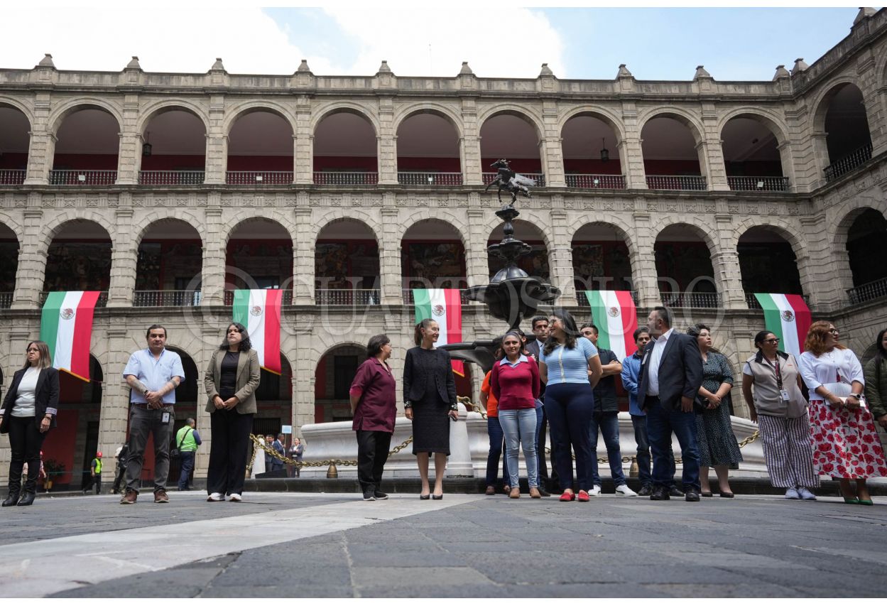 • CIUDAD DE MÉXICO, 19SEPTIEMBRE2025.- Claudia Sheinbaum, presidenta de México, durante su participación en el simulacro nacional en las instalaciones de Palacio Nacional. FOTO: PRESIDENCIA/CUARTOSCURO.COM