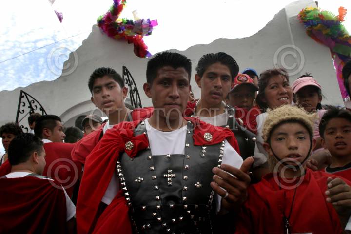 MEXICO D.F 26 MARZO 2005.- Jóvenes vestidos de romanos y judas a su entrada a la explanada de Cuajimalpa, como parte de la tradición de los Judas de Semana Santa en esta delegación. FOTO: Eunice Adorno/CUARTOSCURO.COM