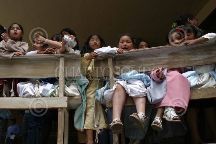 MEXICO D.F 26 MARZO 2005.- Niñas vestidas de virgenes descansan en la iglesia de Cuajimalpa durante los festejos de Semana Santa en esta delegación. FOTO: Eunice Adorno/CUARTOSCURO.COM