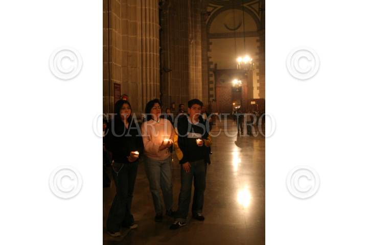 MEXICO D.F 02 ABRIL 2005.- Feligreses oran por el Papa Juan Pablo II después de haber muerto la noche de ayer, en la catedral metropolitana. FOTO: Eunice Adorno/CUARTOSCURO.COM