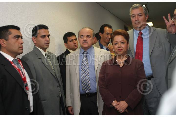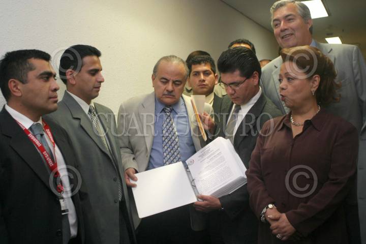 MEXICO D.F 02 ABRIL 2005.- Integrales de la Sección Instrucctora Francisco Cuautémoc Frías del PRI Rebeca Elías Laredo, PRI, y Alvaro Elías Laredo, entregaron a la Mesa Directiva de la Cámara de Diputados el documento de dictamen que declara la procedencia para el desafuero del jefe de Gobierno capitalino, Andrés Manuel López Obrador. FOTO: Eunice Adorno/CUARTOSCURO.COM