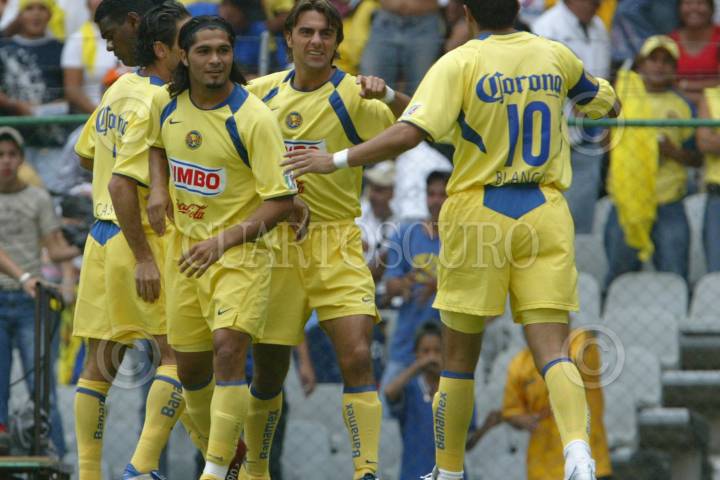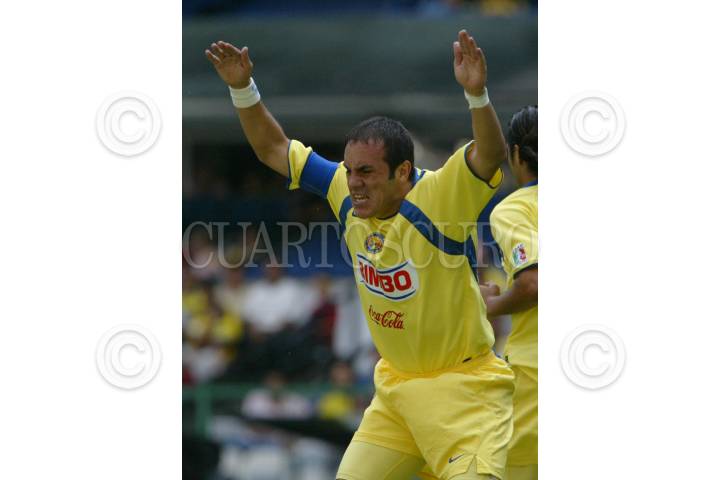 MEXICO, D.F. 31JULIO2005.- Cuauhtemoc Blanco, anoto uno de los tres goles que hizo triunfador al equipo del America en su encuentro con los Tigres, durante el partido de Apertura 2005. FOTO: Sandra Perdomo \CUARTOSCURO.COM