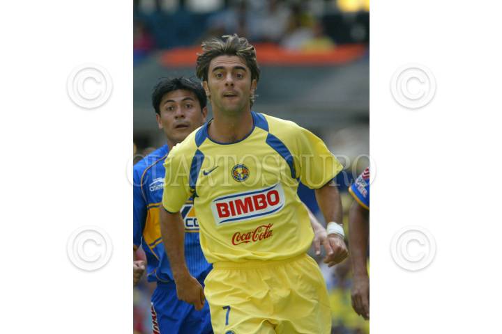 MEXICO, D.F. 31JULIO2005.- Claudio el "piojo" Lopez, metio uno de los tres goles que hizo triunfador al equipo del America en su encuentro con los Tigres, durante el partido de Apertura 2005. FOTO: Sandra Perdomo \CUARTOSCURO.COM