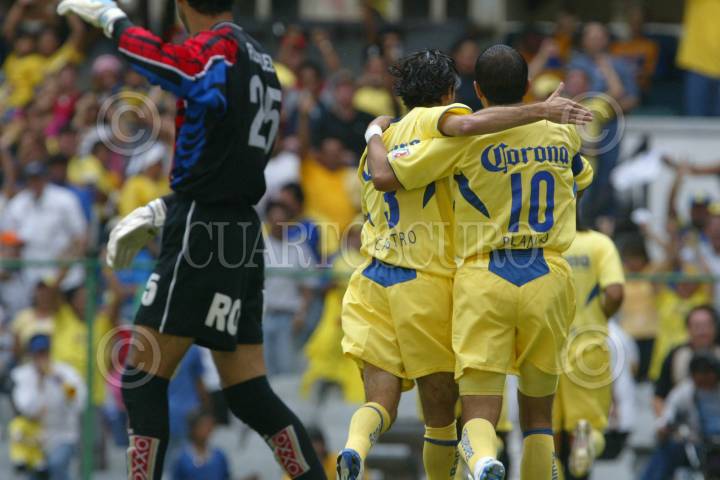MEXICO, D.F. 31JULIO2005.- Festejo de las Aguilas del America, quedando 3 a 1 frente a los Tigres, en el partido de aperturo 2005 en el Estadio Azteca. FOTO: Sandra Perdomo \CUARTOSCURO.COM