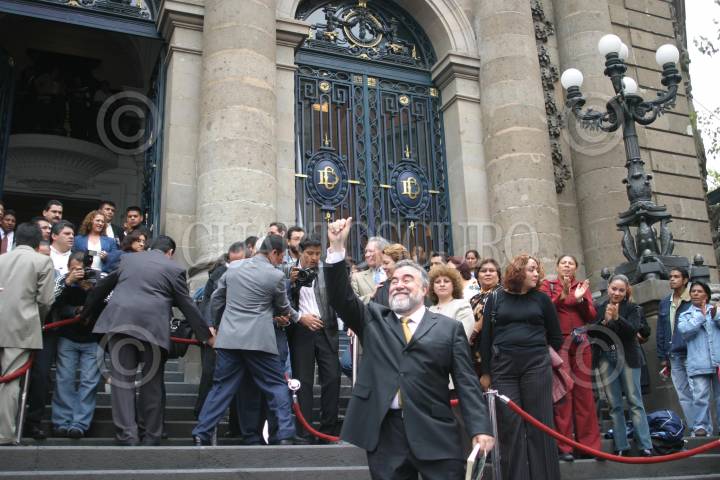 MEXICO, D.F. 02AGOSTO2005.- Alejandro Encinas, al salir de la Asamblea Legislativa, luego de ser nombrado nuevo jefe de Gobierno capitalino. FOTO: Sandra Perdomo/ CUARTOSCURO.COM