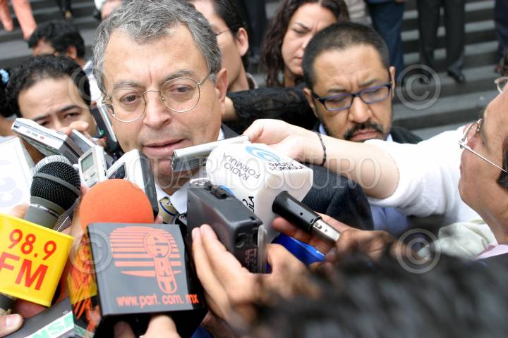 MEXICO, D.F. 02AGOSTO2005.- El diputado, Manuel Camacho Solis, es entrevistado por periodistas a su llegada a la ALDF, a la toma de protesta de Alejandro Encinas, como jefe de Gobierno capitalino. FOTO: Sandra Perdomo/CUARTOSCURO.COM