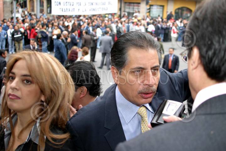 MEXICO, D.F. 02AGOSTO2005.- El senador Jesús Ortega, es entrevistado a su llegada a la ALDF, donde tomò protesta como jefe de Gobierno capitalino, Alejandro Encinas; lo acompaña la diputada local Lorena Villavicencio. FOTO: Sandra Perdomo/CUARTOSCURO.COM