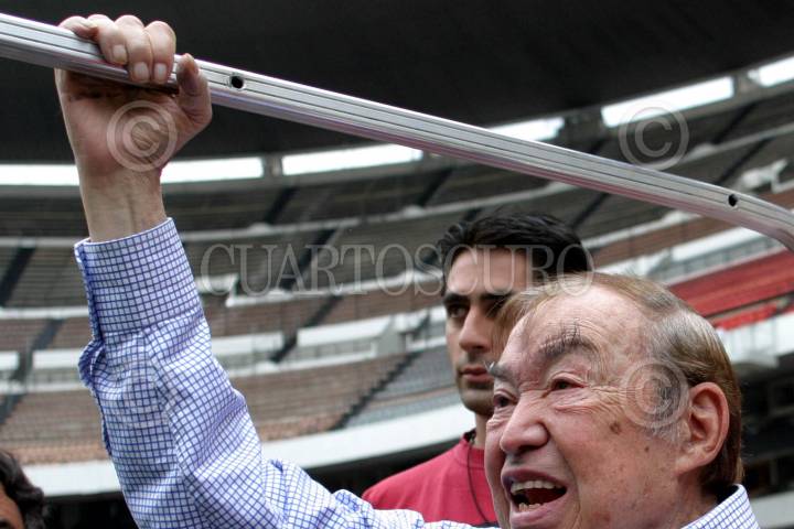 MEXICO D.F. 23MAYO2006.- El cronista deportivo Angel Fernández Rugama fallecio a la edad de 80 años a causa de complicaciones renales. En la cancha del estadio azteca el narrador recibió un homenaje el 01 de mayo del 2005 por parte de la directiva del Club Atlante. FOTO ARCHIVO: Sandra Perdomo/CUARTOSCURO.COM