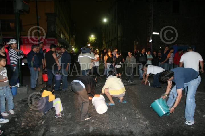 MÉXICO, D.F., 12AGOSTO2011.- Vecinos de la calle República de Venezuela no permitieron el trabajo de la maquinaria para el inicio de las obras de la Línea 4 del Metrobus. Los pobladores retiraron los pedazos de cinta asfáltica que ya habían levantado los trascabos FOTO: LM ACEVEDO/CUARTOSCURO.COM