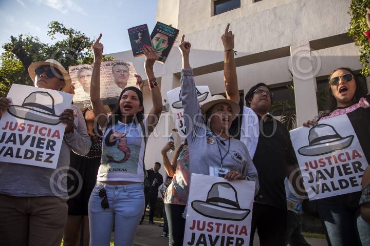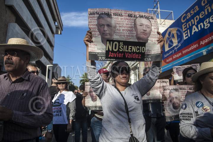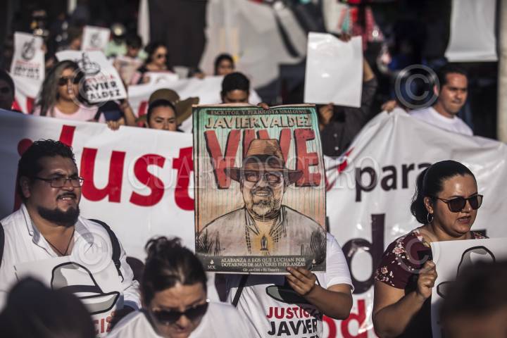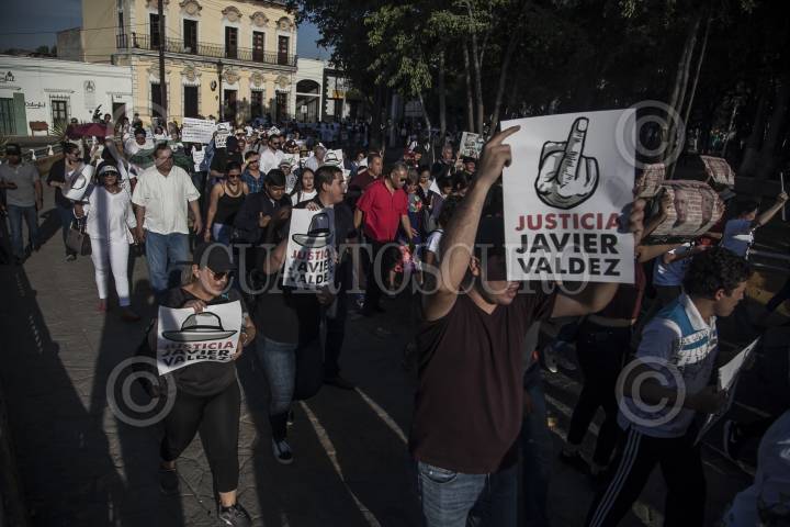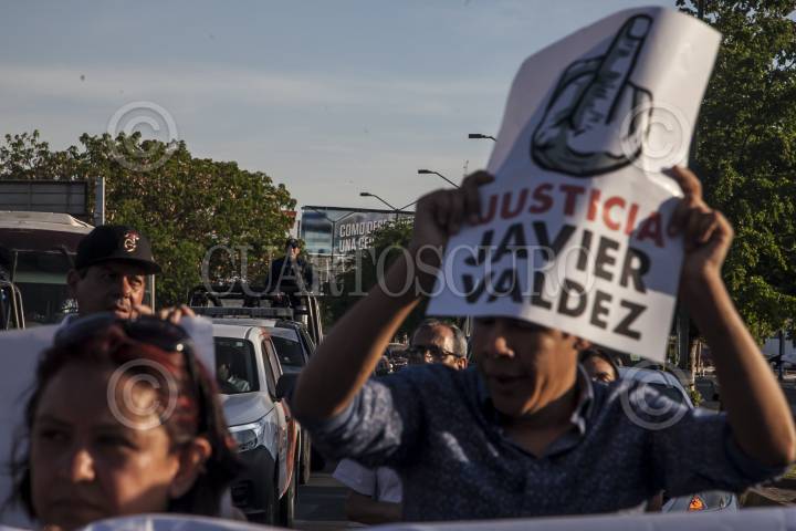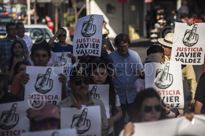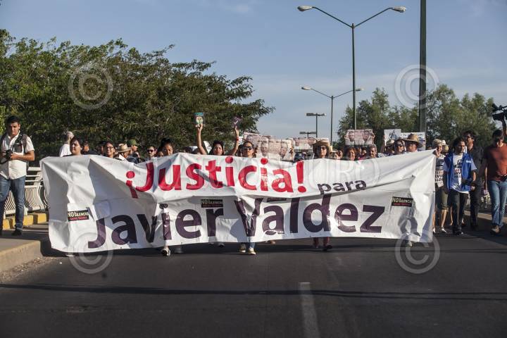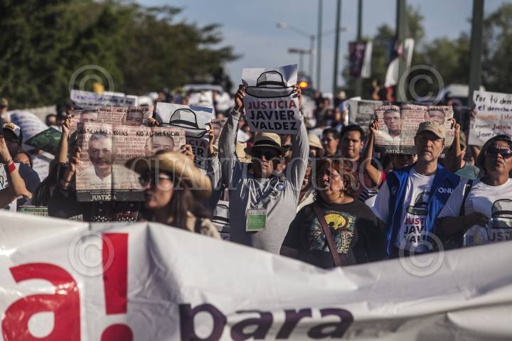 CULIACÁN, SINALOA, 15MAYO2018.- Durante la Jornada Nacional de protesta un año de impunidad por el asesinato del periodista Javier Valdez Cárdenas, amigos, familiares, periodistas y diferentes organizaciones, realizaron una protesta de la catedral de la ciudad a la fiscalia del Estado para exigir justicia a un año del asesinato de Javier Valdez. FOTO: RASHIDE FRIAS /CUARTOSCURO.COM