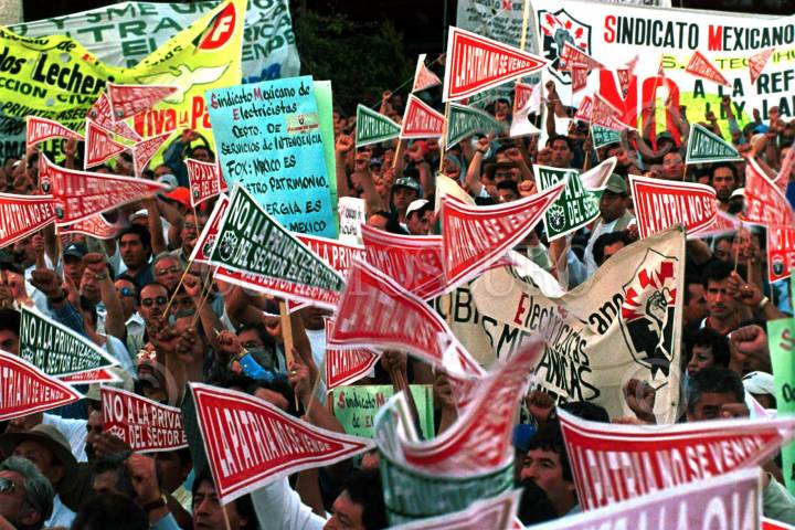 El Sindicato Mexicano de Electricistas (SME), realizó un mitin en contra de la privatización de la energía electrica, en la explanada de la Torre del Caballito .FOTO: Oswaldo Ramírez/CUARTOSCURO.COM
