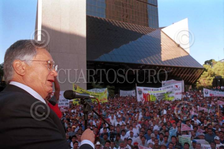Manuel Barttlet, senador del PRI y uno de los principales opositores a la reforma del sector eléctrico del presidente Vicente Fox, participo como orador durante el mitin que realizaron trabajadores electricistas en contra de la privtización este importante sector.FOTO: Oswaldo Ramírez/CUARTOSCURO.COM