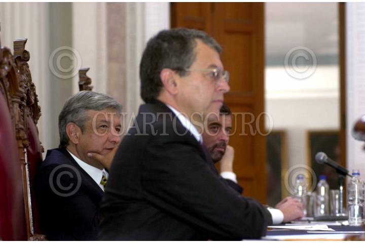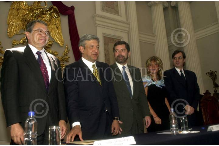 El Instituto de Investigaciones Juridicas de la Universidad Nacional Autónoma de México, organizó el Coloquio Actualidad de Júarez-Encuentro Conmemorativo, en el cual participaron JUan Ramæon de la Fuente, rector de la UNAM, Andrés Manuel López Obrador, jefe de gobierno del D.F., Manuel Camacho Solis, ex candidato presidencial y José Woldemberg, consejero presidente del IFE.FOTO: Oswaldo Ramírez/CUARTOSCURO.COM