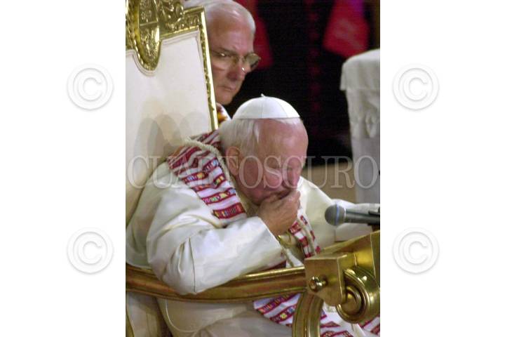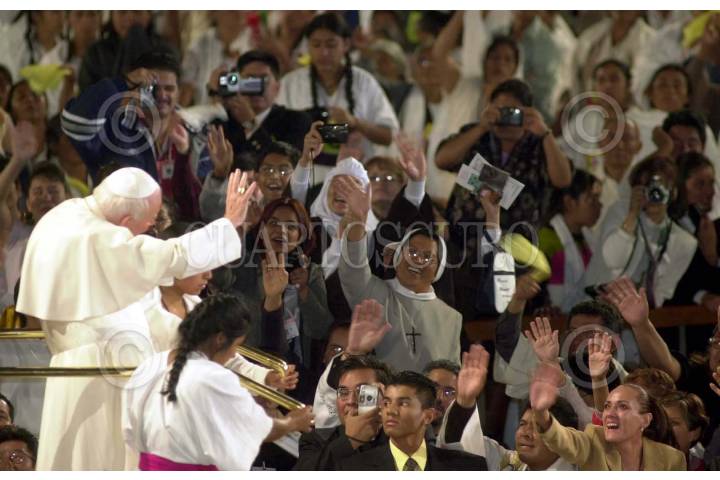 MEXICO D.F 02 ABRIL 2005.- Muere el Papa Juan Pablo II a las 21:37 horas de Roma, el sumo Pontífice de 84 años de edad y luego de 26 años de pontificado; el desenlace se da luego de una larga agonía. En imagen de archivo durante la misa de canonizacón del veato Juan Diego en su última visita en nuestro país. FOTO: Oswaldo Ramírez/CUARTOSCURO.COM