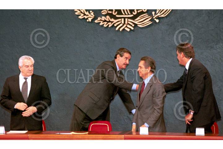 Ernesto Martens, Vicente Fox, Victor Manuel Tinoco y Alfredo Elías Ayub, en la ceremonia de entrega de premios al ahorro de energía del 2001. FOTO: Christian Palma/CUARTOSCURO.COM