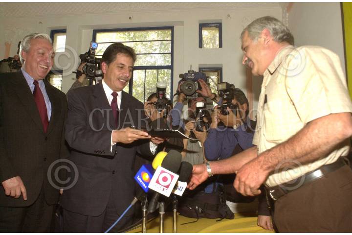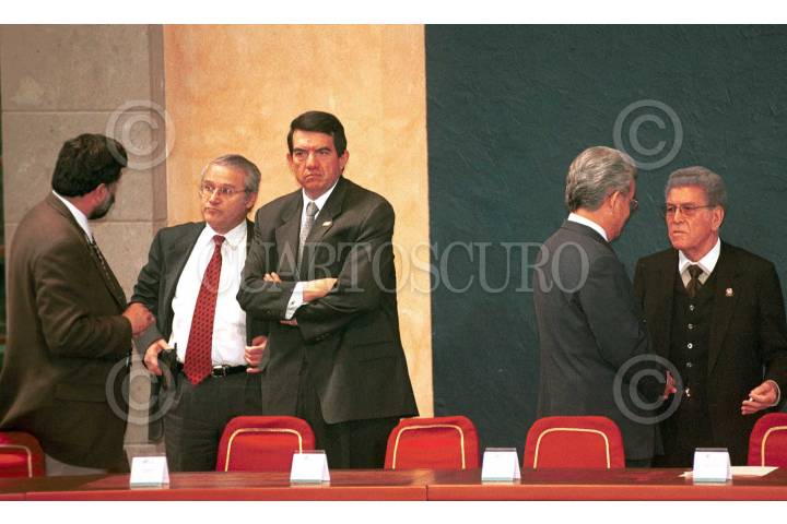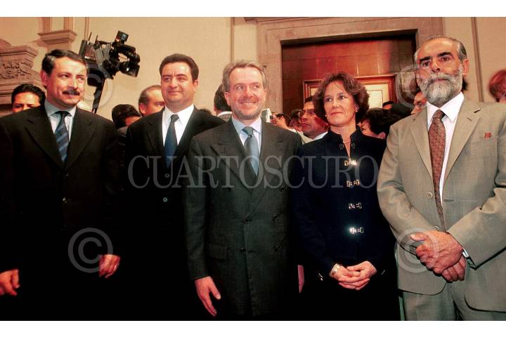 Francisco Barnés, Juan José Rodríguez Prats, Alfonso Caso, Bernardo Quintana y Leonardo Rodríguez Alcaine, en la ceremonia de entrega de premio al ahorro de energía 2001, en la residencia oficial de los Pinos. FOTO: Christian Palma/CUARTOSCURO.COM