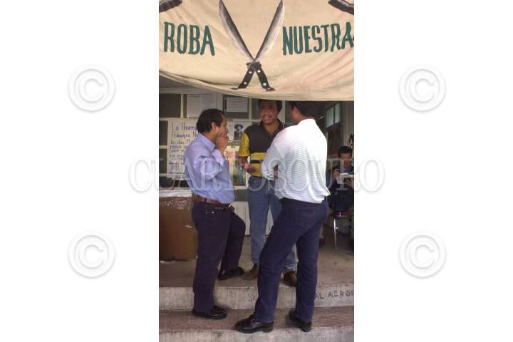 Dos elementos de la Policía Judicial del Estado de México, que no quisieron dar sus nombres, fueron sorprendidos por pobladores de San Salvador Atenco realizando acciones de espionaje dentro del pueblo, por lo que fueron "detenidos" hasta que no fueran las autoridades a respondr por ellos para exigirles el cese a ese tipo de prácticas en San Salvador Atenco. FOTO: Christian Palma/CUARTOSCURO.COM