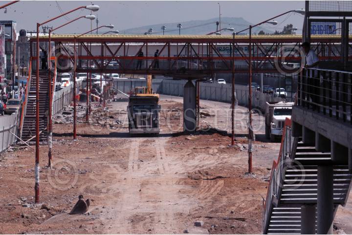 ECATEPEC, ESTADO DE MÉXICO, 01ABRIL2010.- Los vendedores ambulantes que ejercían su actividad comercial en el paradero de la terminal de Ciudad Azteca, del sistema de transporte colectivo metro, tuvieron que ser removidos para iniciar la segunda etapa de la terminal "mexipuerto", como se le conocerá a la base de los mexibuses que correrán de Ecatepec hacia Tecámac. FOTO: MARIO NULO/CUARTOSCURO.COM