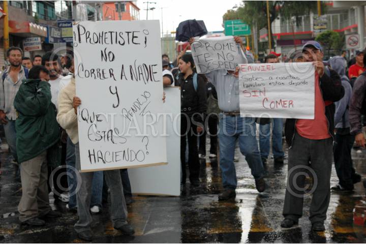 ECATEPEC, ESTADO DE MÉXICO, 11ABRIL2010.- Ex trabajadores de las diferentes presidencias municipales del Estado de México, se manifiestan en contra del cumplimiento de sus demandas. El presidente de la Sala Auxiliar de Ecatepec, del Tribunal Estatal de Conciliación y Arbitraje (TECA), Víctor Javier Sosa Muñiz, reconoció que tiene acumuladas 4 mil 500 demandas que iniciaron trabajadores de más de 50 ayuntamientos, que fueron despedidos injustificadamente desde 2007 a la fecha. En los últimos seis meses el municipio de Nezahualcóyotl enfrenta 890 demandas laborales recientes, mientras que Ecatepec 800 sin que a la fecha se hayan resuelto. FOTO: MARIO NULO/CUARTOSCURO.COM