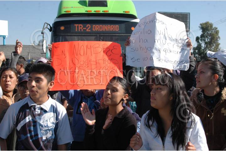 ECATEPEC, ESTADO DE MÉXICO 13OCTUBRE2010.- Habitantes de cinco colonias de Ecatepec bloquearon la circulación del Mexibús para denunciar que este sistema de transporte masivo les afecta su economía, en lugar de beneficiarlos, ya que utilizan un medio de transporte "extra" que los comunique con una estación del transmasivo, pues sobre la avenida Central se retiró el transporte público de combis y camiones. También demandaron el retiro de los puentes peatonales provisionales, por la construcción de uno de concreto que brinde seguridad a todos los peatones. FOTO: MARIO NULO/CUARTOSCURO.COM