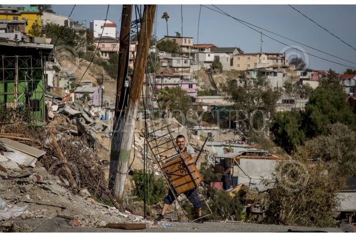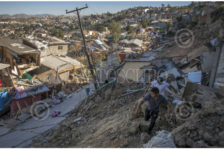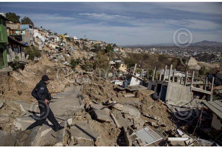 TIJUANA, BAJA CALIFORNIA, 16FEBRERO2018.- Un deslizamiento de tierra provocó el derrumbe de 105 casas donde vivían más de 250 personas, esto en la colonia Lomas del Rubí, de la delegación San Antonio de los Buenos. De acuerdo a información oficial, el colapso y agrietamiento del cerro comenzó el pasado el 19 de enero y fue provocado por un movimiento de tierra, causando la desestabilización del talud. Actualmente se se está a la espera de un dictamen técnico para definir responsabilidades en el caso. FOTO: CHRISTIAN SERNA /CUARTOSCURO.COM