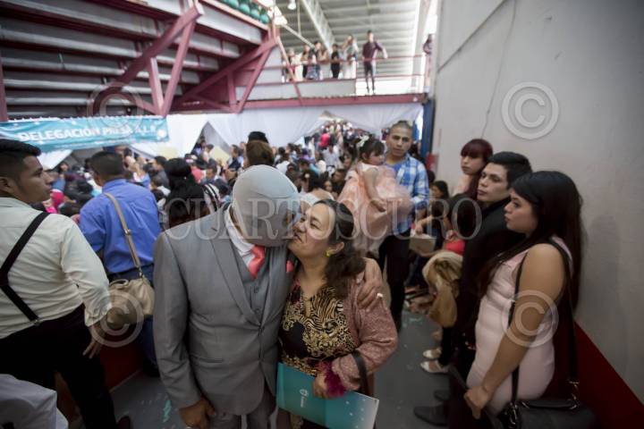 TIJUANA BAJA CALIFORNIA, 14FEBRERO2018.- Se llevó a cabo la ceremonia en la cual mil 650 parejas reafirmaron su compromiso y contrajeron matrimonio en el palenque del Parque Morelos, en este día del amor y la amistad. FOTO: CHRISTIAN SERNA /CUARTOSCURO.COM