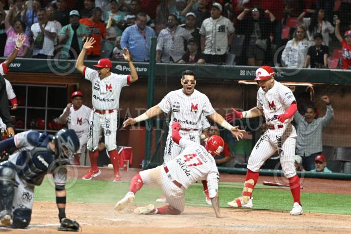 CIUDAD DE MÉXICO, 17ABRIL2024.- Los Diablos Rojos del México llegaron a cinco victorias en la temporada después de que ayer vinieron de atrás para dejar en el terreno a los Tigres de Quintana Roo (2-3), cuando Carlos Sepúlveda pegó imparable con el que Juan Carlos Gamboa anotó la carrera del triunfo por pizarra de 4-3, en un juego que se extendió a 11 entradas. FOTO: DIABLOS ROJOS DEL MÉXICO/CUARTOSCURO.COM