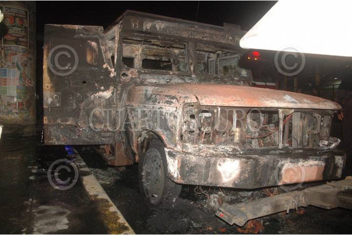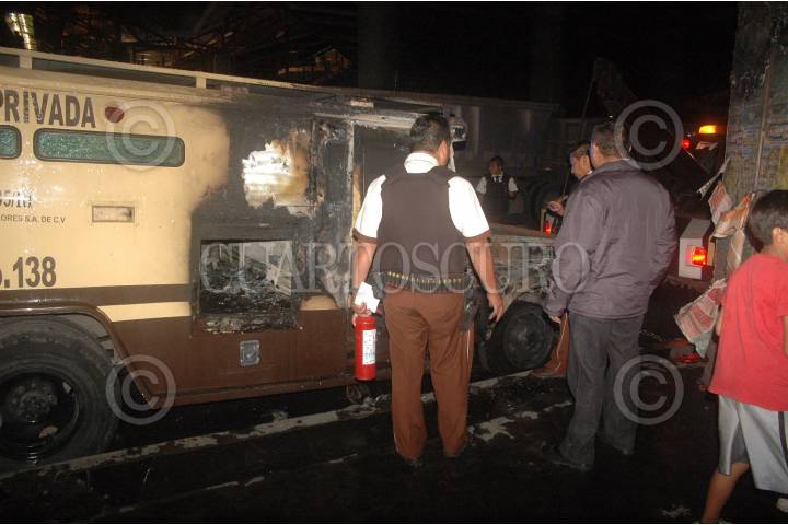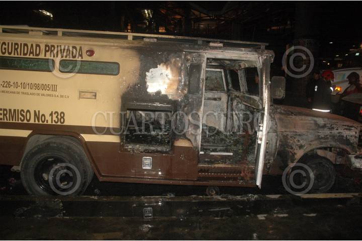 NAZAHUALCOYOTL, ESTADO DE MÉXICO, 30JULIO2010.- La camioneta de valores de la empresa Cometra con número económico 1871, placas 720-DC-8, se incendio esta noche a las afueras de la estación del metro Nezahualcoyotl, ubicada en avenida central; durante el recorrido que realizaba para la recolección de las remesas de las taquillas. El incendio se sucitó por un corto circuito dentro de la unidad, la cuál será trasladada a las oficinas del ministerio público ubicadas la delegación política conocida como La Bola. No hubo lesionados ni perdidas económicas, ya que se realizó en traslado a otra unidad de valores." FOTO: DAVID BOLAÑOS/CUARTOSCURO.COM