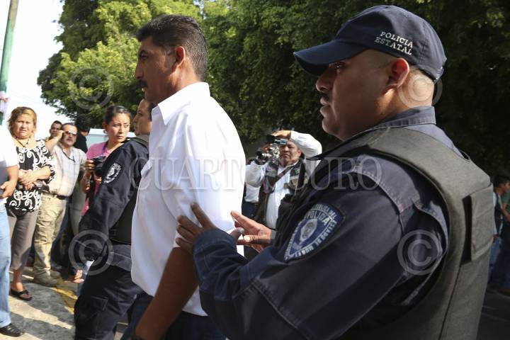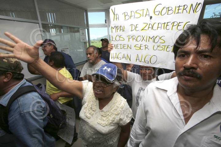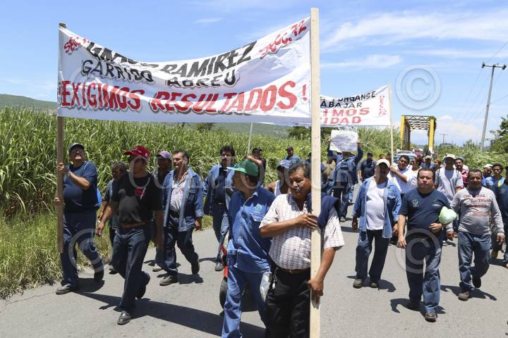 ZACATEPEC, MORELOS 12AGOSTO2013.- Tras parar actividades en el ingenio de Zacatepec, 1000 trabajadores pertenecientes a la sección 72 del sindicato azucarero, marcharon por el libramiento a Jojutla hasta la sub procuraduría del la Zona Sur Poniente, para reclamar al gobierno del estado de Morelos pare la ola de inseguridad que se ha presentado en la región, esto tras encontrar el cuerpo degollado de Emilio Romano Cruz, quien fuera trabajador del ingenio. Los manifestantes ingresaron a las instalaciones de la Procuraduría General de Justicia de la Zona para exigir saliera el subprocurador y se comprometiera a esclarecer el caso, así como otros cuatro que se han presentado en los días pasados, de lo contraría amenazaron con tomar las armas y defenderse. FOTO: ALMA LAFAYET /CUARTOSCURO.COM