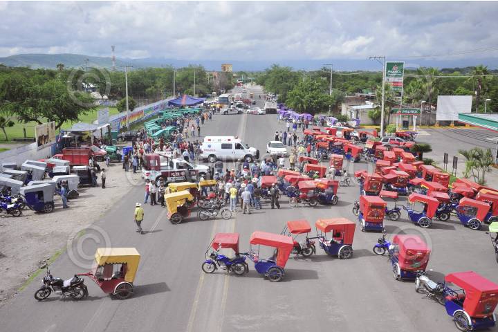 XOXOCOTLA, MORELOS, 06JULIO2013.- Habitantes y uniones de mototaxistas de la comunidad de Xoxocotla, realizaron un bloqueo a la entrada de esta localidad con la finalidad de partir un pastel a un año de que gobernador del estado, Graco Ramirez les donaría una ambulancia misma que hasta la fecha no ha sido equipada y tampoco se ha capacitado a nadie para su uso, por lo que se encuentra abandonada. FOTO: ALMA LAFAYET /CUARTOSCURO.COM