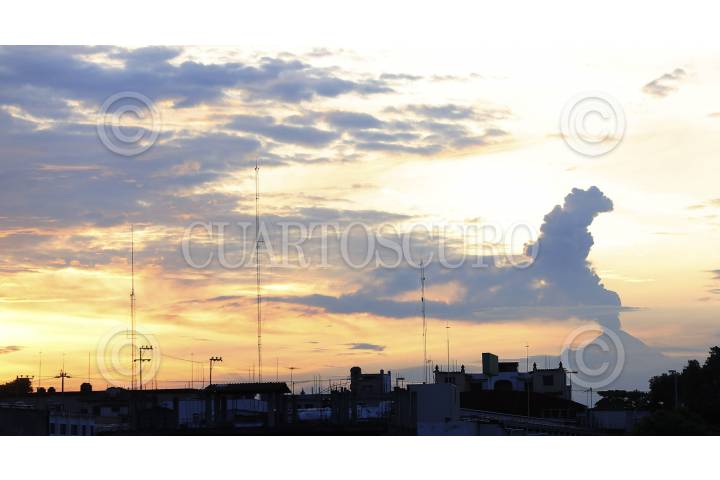 CUERNAVACA, MORELOS, 13JULIO2013.- Durante el amanecer los habitantes de la ciudad de Cuernavaca pudieron observar la fumarola que emitió el volcán Popocatépetl, un paisaje ya poco común por la continua extensión de la mancha urbana. FOTO:ALMA LAFAYET /CUARTOSCURO.COM