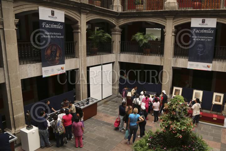 CUERNAVACA, MORELOS, 17JULIO2013.- Habitantes y turistas de distintos puntos de la república visitan la exposición itinerante de los Facsímiles de la Constitución de 1824, 1857, 1917 y los "Sentimientos de la Nación", organizada por la Secretaría de la Defensa Nacional. Dicha exposición se encuentra en el centro de la ciudad en los patios de palacio de Gobierno y será desmontada a finales de esta semana. FOTO: ALMA LAFAYET /CUARTOSCURO.COM