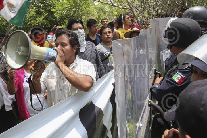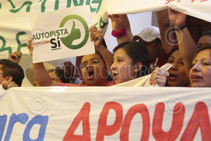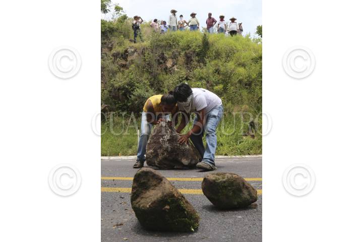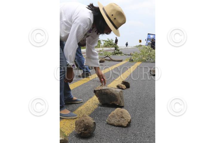 TEPOZTLAN, MORELOS, 23JULIO2013.- Habitantes de pueblo de Tepoztlán bloquearon la autopista La pera-Cuautla en el Km 16 donde se registró un conatos de violencia palos y piedras ante el seguimiento de la ampliación de dicha autopista. La obra pretende traspasar el cerco impuesto por ejidatarios y comuneros que alegan no haber dado permiso para que se expropien las tierras. FOTO: ALMA LAFAYET /CUARTOSCURO.COM