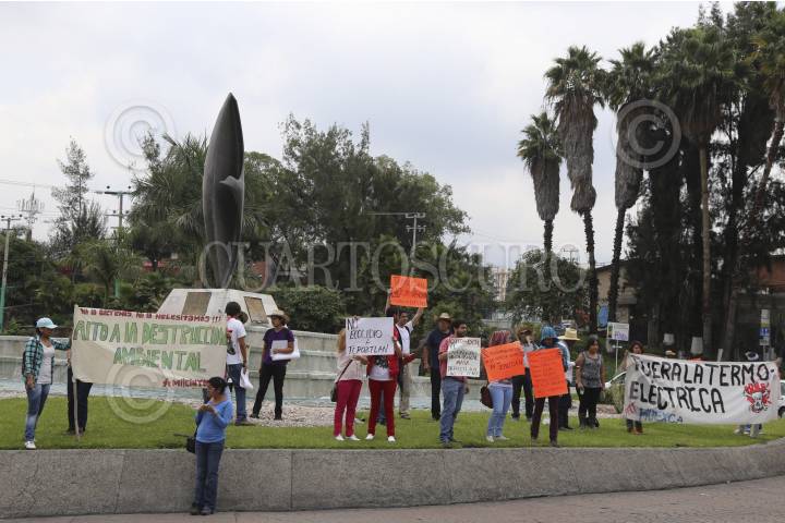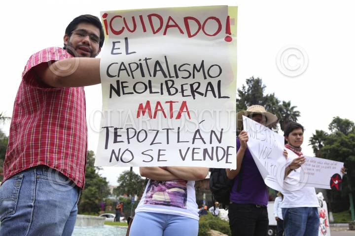 CUERNAVACA, MORELOS 28JULIO2013.- Jovenes universitarios y habitantes de la comunidade de Huexca se manifestaton a la entrada de la ciudad en el monumento conocido como La glorieta de la paz, esto para mostrar su desacuerdo ante el proyecto de la ampleación de la autopista la pera-Cuautla. FOTO: ALMA LAFAYET /CUARTOSCURO.COM