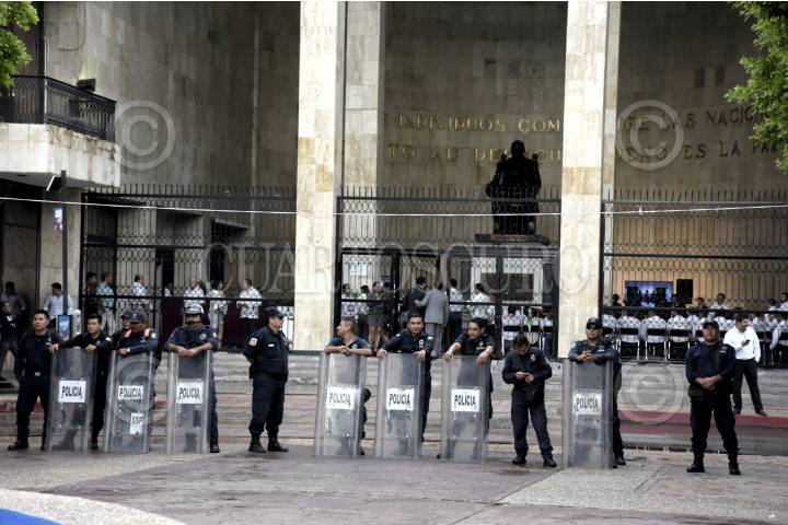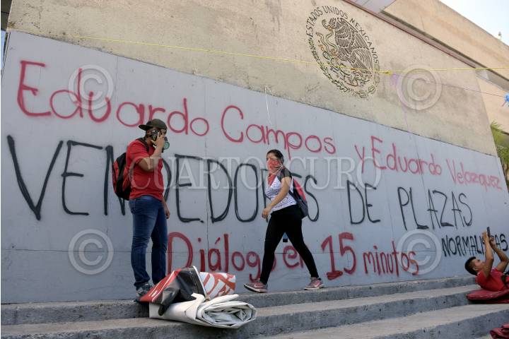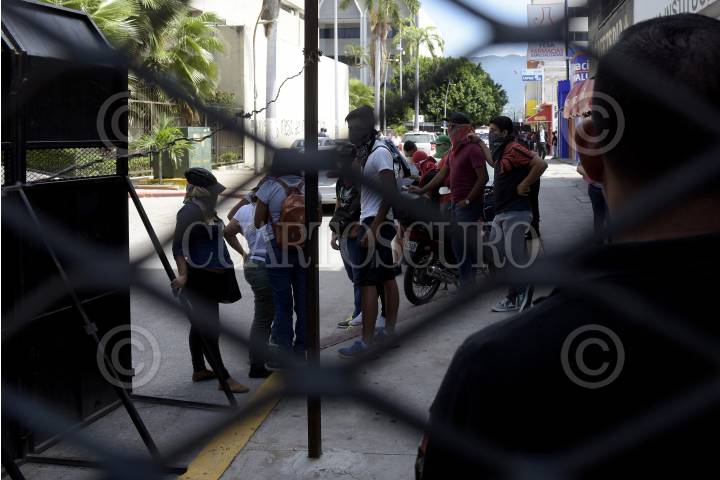 TUXTLA GUTIÉRREZ, CHIAPAS, 23AGOSTO2018.- Estudiantes normalistas bloquearon los accesos al palacio de gobierno para exigir diálogo con las autoridades para que les sean entregadas las plazas docentes correspondientes. FOTO: JACOB GARCÍA /CUARTOSCURO.COM