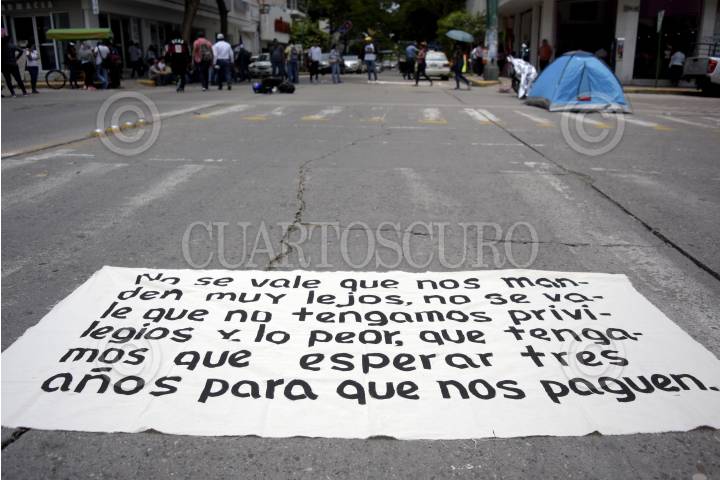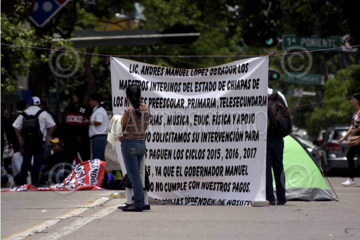 TUXTLA GUTIÉRREZ, CHIAPAS, 20AGOSTO2018.- Más de 200 maestros interinos de Chiapas, iniciaron plantón indefinido en el primer cuadrante de la capital chiapaneca para exigir al gobierno les pague sueldos atrasados del 2015 al 2018. FOTO. JACOB GARCÍA /CUARTOSCURO.COM