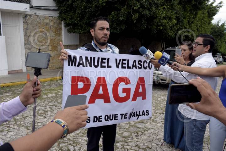 TUXTLA GUTIÉRREZ, CHIAPAS, 21AGOSTO2018.- El comunicador y director editorial del portal 3 Minutos Informa Juan Carlos Santiago se manifestó afuera de la casa de gobierno en la capital chiapaneca, para exigir al gobernador Manuel Velasco Coello, le pague los adeudos por concepto de publicidad que adquirieron con dicho medio desde el año 2013 a la fecha, mismos que no se le ha liquidado. El comunicador argumentó que continuará con una serie de mafestaciones hasta que le sea pagada la deuda. FOTO: JACOB GARCÍA /CUARTOSCURO.COM