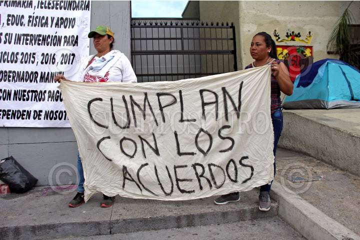 TUXTLA GUTIÉRREZ, CHIAPAS, 23AGOSTO2018.- A cuatro días consecutivos de estar en plantón indefinido, maestros interinos de Chiapas inician huelga de hambre a fin de que el gobierno del estado les liquide los adeudos de salarios desde el 2015 a la fecha. Entre los huelguistas se encuentran dos maestras embarazadas. FOTO: JACOB GARCÍA /CUARTOSCURO.COM
