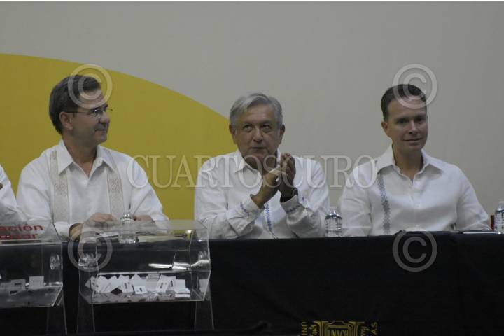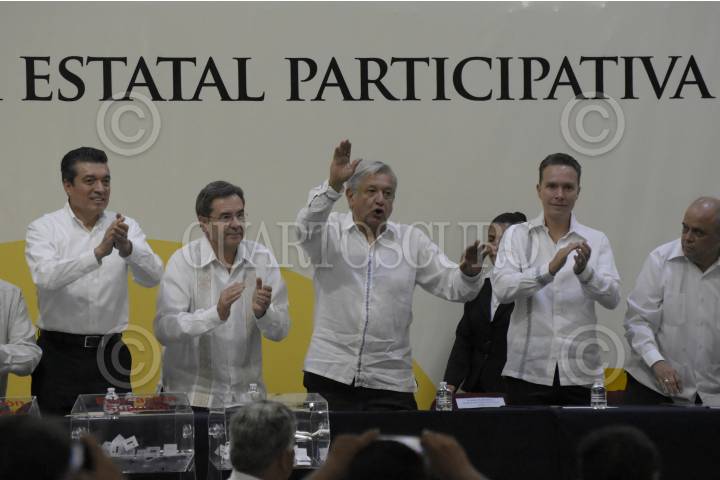 TUXTLA GUTIÉRREZ, CHIAPAS, 27AGOSTO2018.- Andrés Manuel López Obrador, Presidente Electo de México, encabezó la puesta en marcha del Foro de Consulta Estatal Participativa en Chiapas. A la cita también asistieron Estebán Moctezuma, designado como el futuro secretario de Educación Pública, y Manuel Velasco, gobernador de la entidad. FOTO. JACOB GARCÍA / CUARTOSCURO.COM