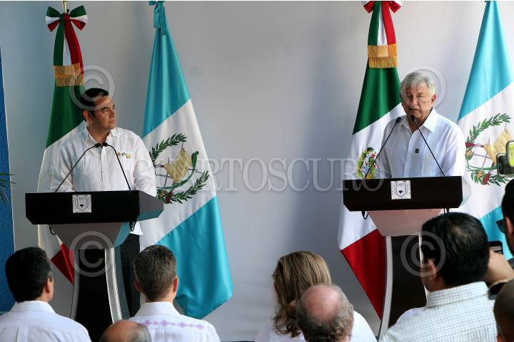 TUXTLA GUTIÉRREZ, CHIAPAS, 28AGOSTO2018.- Se reúnen en Chiapas el presidente electo de la república mexicana Andrés Manuel López Obrador y el presidente de la república de Guatemala, Jimmy Morales Cabrera, para tratar asuntos relacionados al fenómeno migratorio y trabajar en programas que ofrezcan mejores condiciones de vida a los pueblos de ambos países con la finalidad de que no se vean obligados a migrar. FOTO: JACOB GARCÍA /CUARTOSCURO.COM