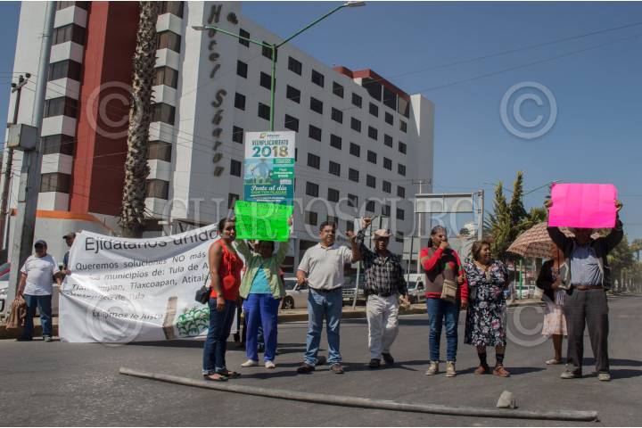 TULA DE ALLENDE, HIDALGO, 02MARZO2018.- Ejidatarios del municipio se manifestaron frente a la Presidencia Municipal por haber instalado un relleno sanitario en territorio ejidal, presuntamente de manera ilegal. Los manifestantes cerraron el acceso de vialidades hacia el centro de la ciudad argumentado que las autoridades correspondientes no habían atendido sus peticiones. Desde el pasado lunes 26 de febrero los ejidatarios han clausurado la entrada a camiones de basura en dicho relleno sanitario ubicado cerca del parque industrial del municipio. FOTO: SELENE PACHECO /CUARTOSCURO.COM