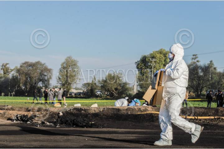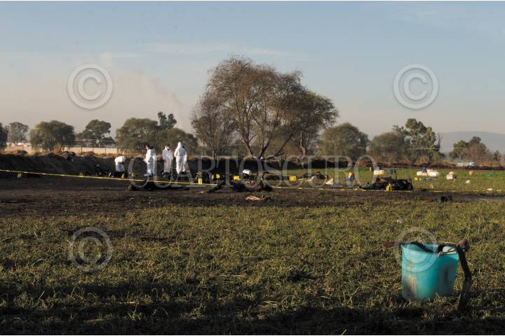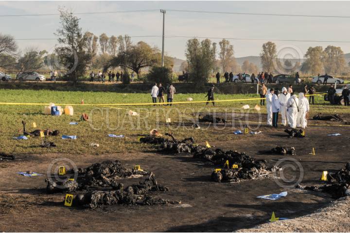 TLAHUELILPAN, HIDALGO, 19ENERO2019.- Después de la explosión registrada en una toma de combustible clandestina, el día de ayer por la tarde en la colonia de San Primitivo, los peritos realizan el levantamiento de cadáveres, personal del ejercito aún mantiene las zona bajo resguardo. Se tenían contabilizados más de 30 muertos y alrededor de 70 heridos. FOTO: SELENE PACHECO /CUARTOSCURO.COM