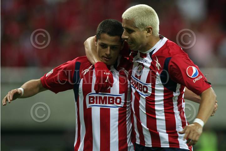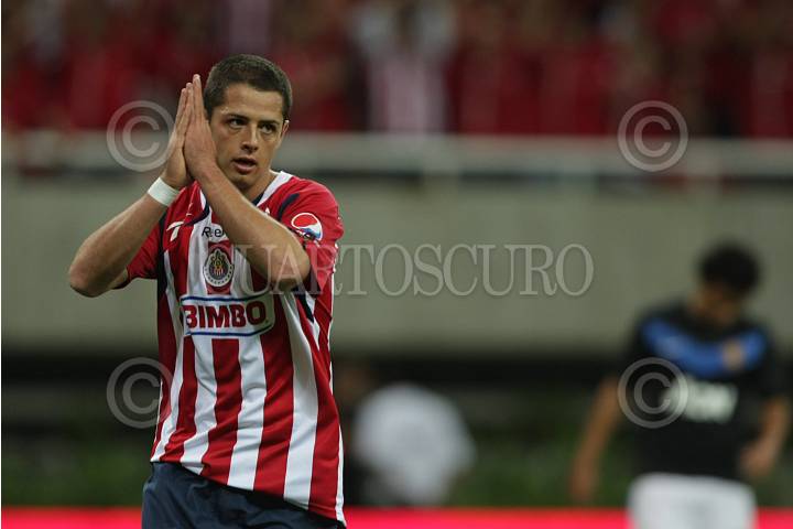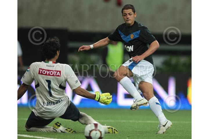 GUADALAJARA, JALISCO, 30JULIO2010.- Las Chivas rayadas del Guadalajara inauguraron esta noche su nuevo estadio "Omnilife" derrotando al Mancheste United tres goles a dos en partido amistoso. El inmueble albergará a mas de 45 mil aficionados. Se destaca la actuación de Javier el "Chicharito" Hernández, quien anotó el primer gol en esta cancha. FOTO: JOSE MARIA MARTINEZ BURGOS/CUARTOSCURO.COM