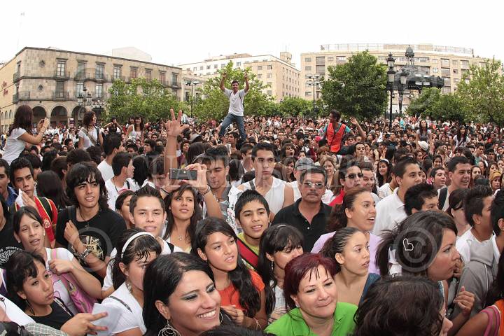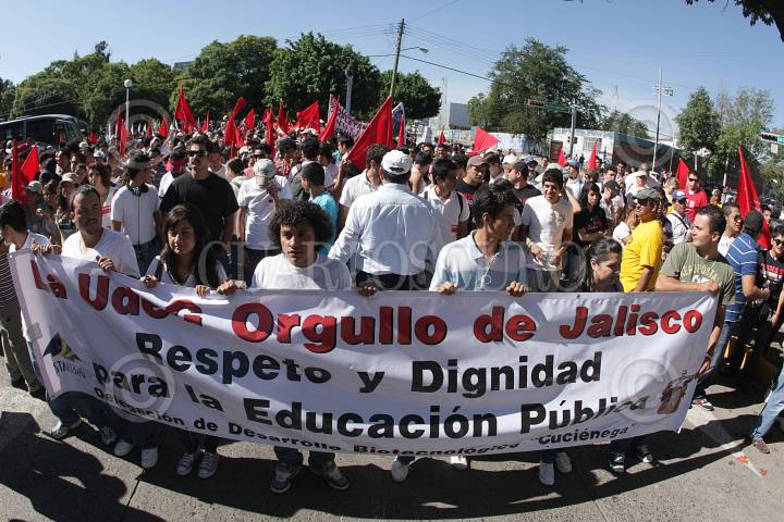 GUADALAJARA, JALISCO, 29SEPTIEMBRE2010.- La mega marcha convocada por la Universidad de Guadalajara (U de G) reunió a miles en la plaza Liberación y llenó varias calles del primer cuadro de la ciudad. Alrededor de 86,000 personas marcharon desde 5 puntos y convergen en la plaza más grande de la ciudad. Los estudiantes demandaron más recursos para su Universidad. FOTO: JOSE MARIA MARTINEZ/CUARTOSCURO.COM