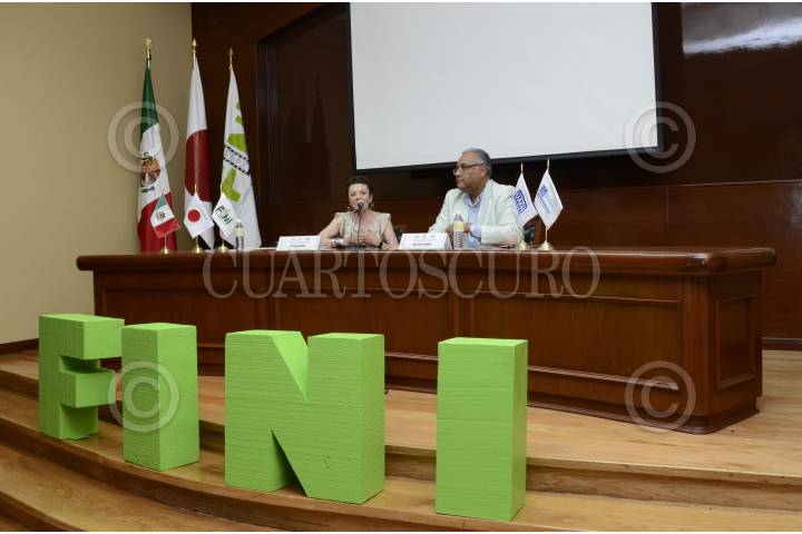 PACHUCA, HIDALGO, 19ABRIL2013.- En una conferencia magistral la fotógrafa Graciela Iturbide mostró sus imágenes representativas de más de 30 años de trabajo, estuvó acompañada del director del Sistema Nacional de Fototecas, Juan Carlos Valdés Marín, esto en el marco del Festival Internacional de la Imagen -FINI- organizado por la Universidad Autónoma del Estado de Hidalgo. El festival fue inaugurado ayer y continuará con actividades hasta el jueves 25 de abril. FOTO: JOYCE GARCÍA /CUARTOSCURO.COM