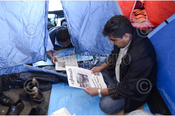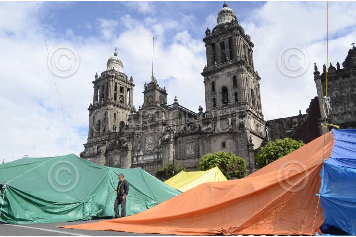 MÉXICO, D.F., 12SEPTIEMBRE2013.- Maestros de la sección 22 de Oaxaca continúan su plantón en el Zócalo capitalino, esto a causa de su rechazo a la reforma educativa y en espera de un diálogo con el secretario de gobernación Miguel Osorio Chong. FOTO: JOYCE GARCÍA /CUARTOSCURO.COM