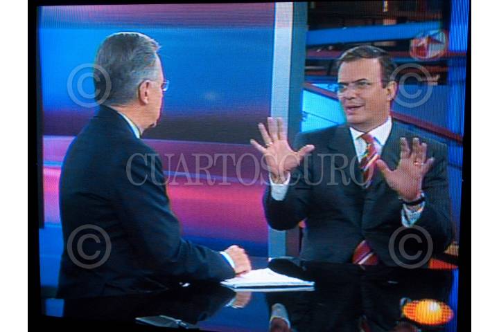 MÉXICO, D.F., 15MAYO2009.- El periodista Joaquín López Doriga entrevisto esta noche en su noticiario al jefe de gobierno del D.F., Marcelo Ebrard Casaubon. FOTO: TOMADA DE TELEVISA/CUARTOSCURO.COM