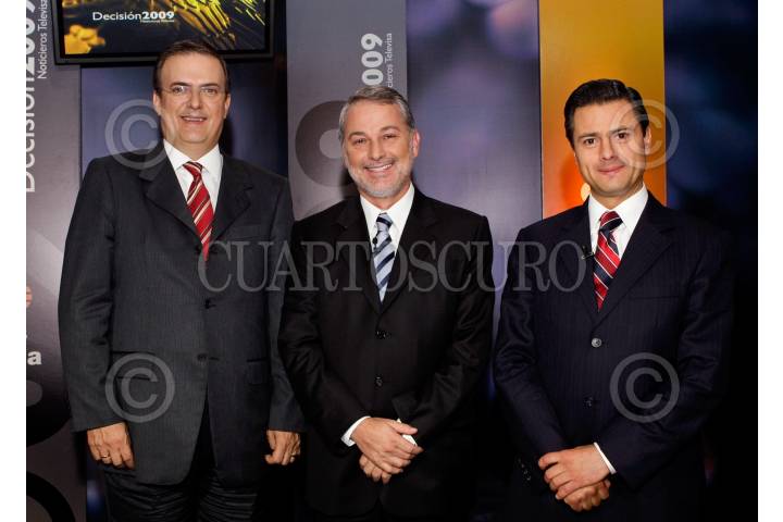 MÉXICO D.F., 11JUNIO2009.- Marcelo Ebrard Casaubón, Jefe de Gobierno, Emilio Márquez, gobernador de Jalisco y Enrique Peña Nieto, gobernador del Estado de México, participaron en el foro organizado por noticieros Televisa. FOTO: ESPECIAL DE TELEVISA/CUARTOSCURO.COM