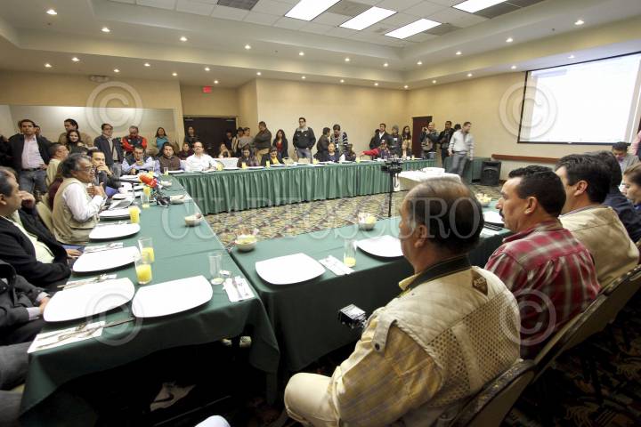 SALTILLO, COAHUILA, 05NOVIEMBRE2014.- En rueda de prensa, Pedro Valtierra, director de la revista y agencia CUARTOSCURO y la Secretaria de Cultura, Ana Sofia Camil, dieron a conocer las bases para el Concurso Regional de Fotografía "Los Derechos Humanos", la cual está dirigida a fotoperiodistas o documentalistas residentes de Coahuila, Durango, Tamaulipas y Zacatecas. FOTO: KARLA ITZEL RUIZ /CUARTOSCURO.COM